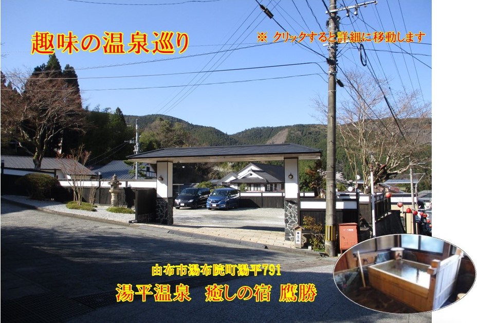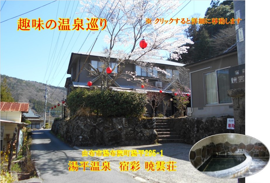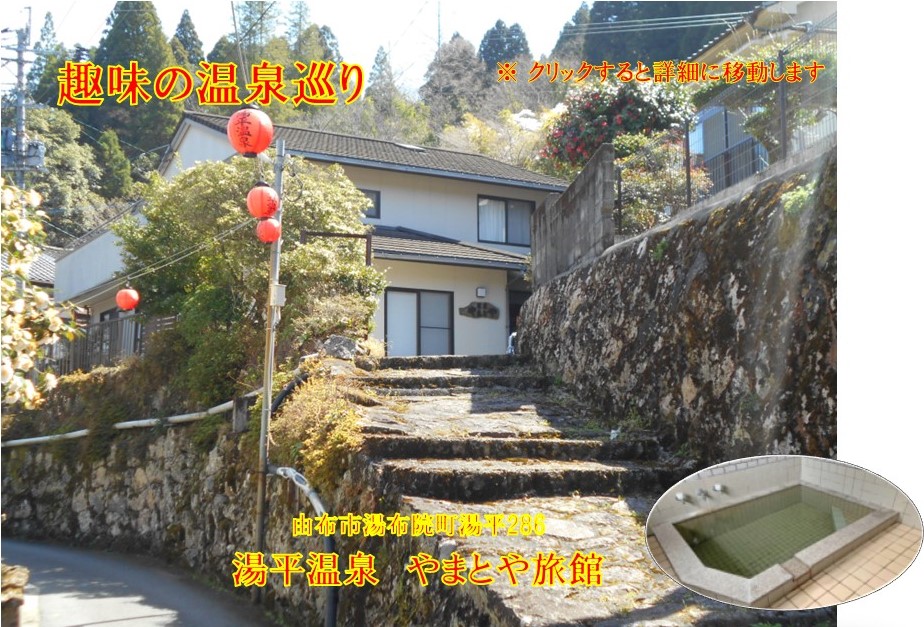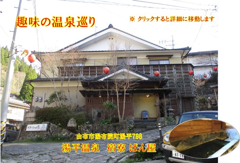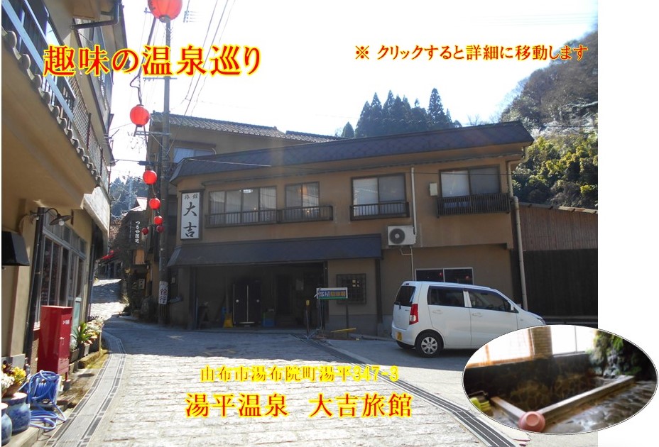 湯布院温泉郷 湯平温泉 / 由布市 / By 大分県の温泉めぐり 湯平温泉 右丸旅館 湯平温泉 山城屋 湯平温泉 旅館いづもや 湯平温泉 大吉旅館 湯平温泉 志美津旅館 湯平温泉 癒しの宿 鷹勝 湯平温泉 花合野 湯平温泉 都屋 湯平温泉 山荘松屋 湯平温泉 清流とほたるの宿 高尾荘 湯平温泉 白雲荘 湯平温泉 ゆのひら 上柳屋 湯平温泉 宿彩 暁雲荘 湯平温泉 花木綿 湯平温泉 旅館まるや 湯平温泉 やまとや旅館 湯平温泉 宿寮 ばん屋 湯平温泉 奥ゆのひら 花あかり 湯平温泉 中の湯温泉 湯平温泉 橋本温泉 湯平温泉 金の湯温泉 湯平温泉 銀の湯温泉 湯布院温泉 温泉マップ 画像をクリックすると 詳細から目的地を検索できます。