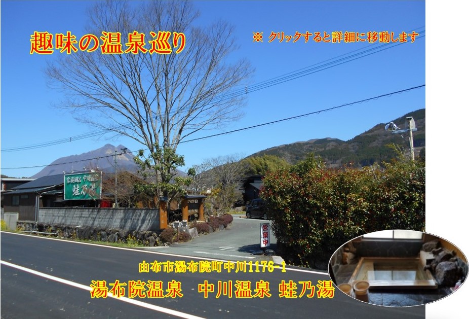 湯布院町 中川・川西地区 / 由布市 / By 大分県の温泉めぐり 湯布院町の南に位置し、JR由布南駅があります。 蔓蕩蒼 湯布院ガーデンホテル 中川温泉 蛙乃湯 旅籠 香乃蔵 湯布院高原 ふうきの里 龍のひげ別邸ゆむた 水分温泉 民宿 水分村 画像をクリックすると 詳細から目的地を検索できます。