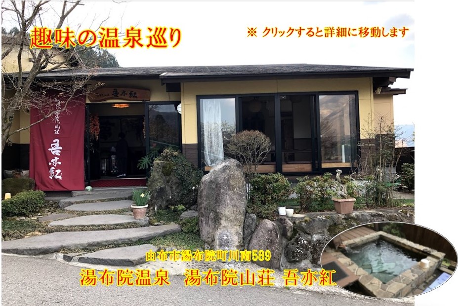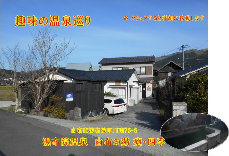 湯布院町 川南地区 / 由布市 / By 大分県の温泉めぐり 川上地区の南に接し、由布岳の景観の良いところです。県道 別府~一宮線が横切り、温泉施設の多くはこの県道より北側に点在しています。 由布院 冨季の舎 いよとみ ゆふいん山水館 欧風旅館 玉屋 湯布院旅館 おかえり 御宿 陣の内 ペンションゆふいん 山荘 田名加 ラスタグラス 湯布院別邸 風の森 ゆふいんバース 里山茶風 蓮輪INN 昔話 ゆふいんフローラハウス 由布の湯 癒・四季 高のや・月・雲 別荘ふるさと かわもと別邸926 ぽっぽ庵 Yufuin Luxury Villa zakuro 東匠庵 山のホテル 夢想園 御宿 たまゆら 笑ねこの宿 旅館 めばえ荘 由布の宿 きふう 湯布院サンデー 由布岳一望の宿 美星 湯布院山荘 吾亦紅 加勢の湯共同温泉 湯布院エリア 温泉マップ 画像をクリックすると 詳細から目的地を検索できます。