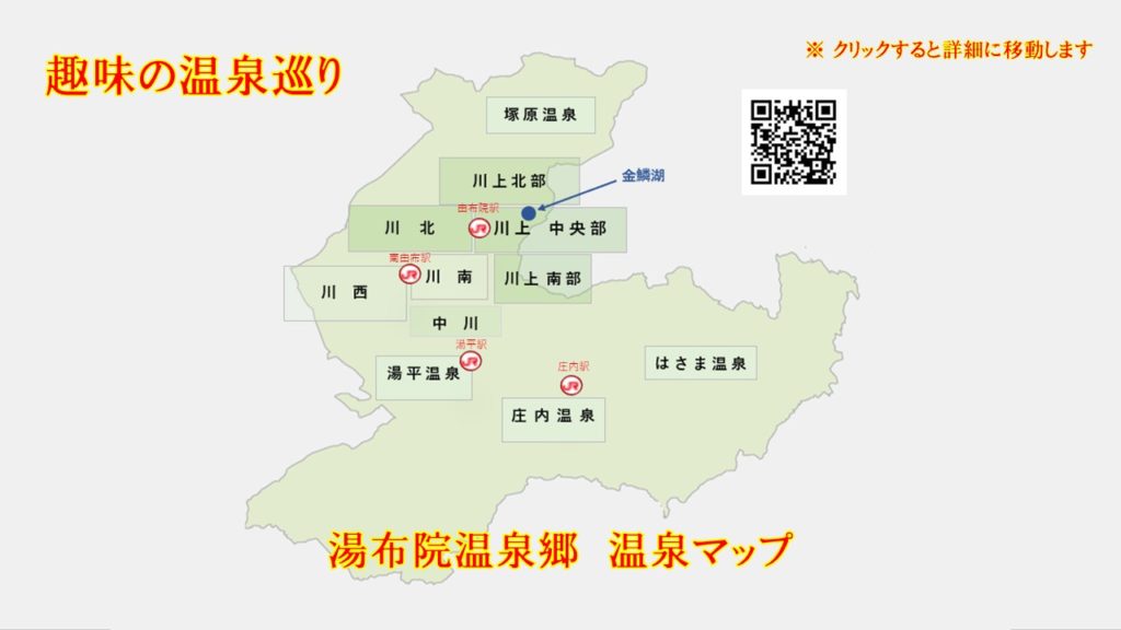 趣味の温泉巡り 湯布院温泉ガイド 大分県由布市の湯布院温泉(湯布院エリア)をアップしました。 ⇓ 下記のご覧になりたいエリアをクリックしてください ⇓ 川上地区 北部 川上地区 中央部 川上地区 中央部共同温泉 川上地区 南部 塚原温泉 川西地区・中川地区 川北地区 川南地区 湯平温泉 庄内温泉 はさま温泉 湯布院温泉 温泉地図